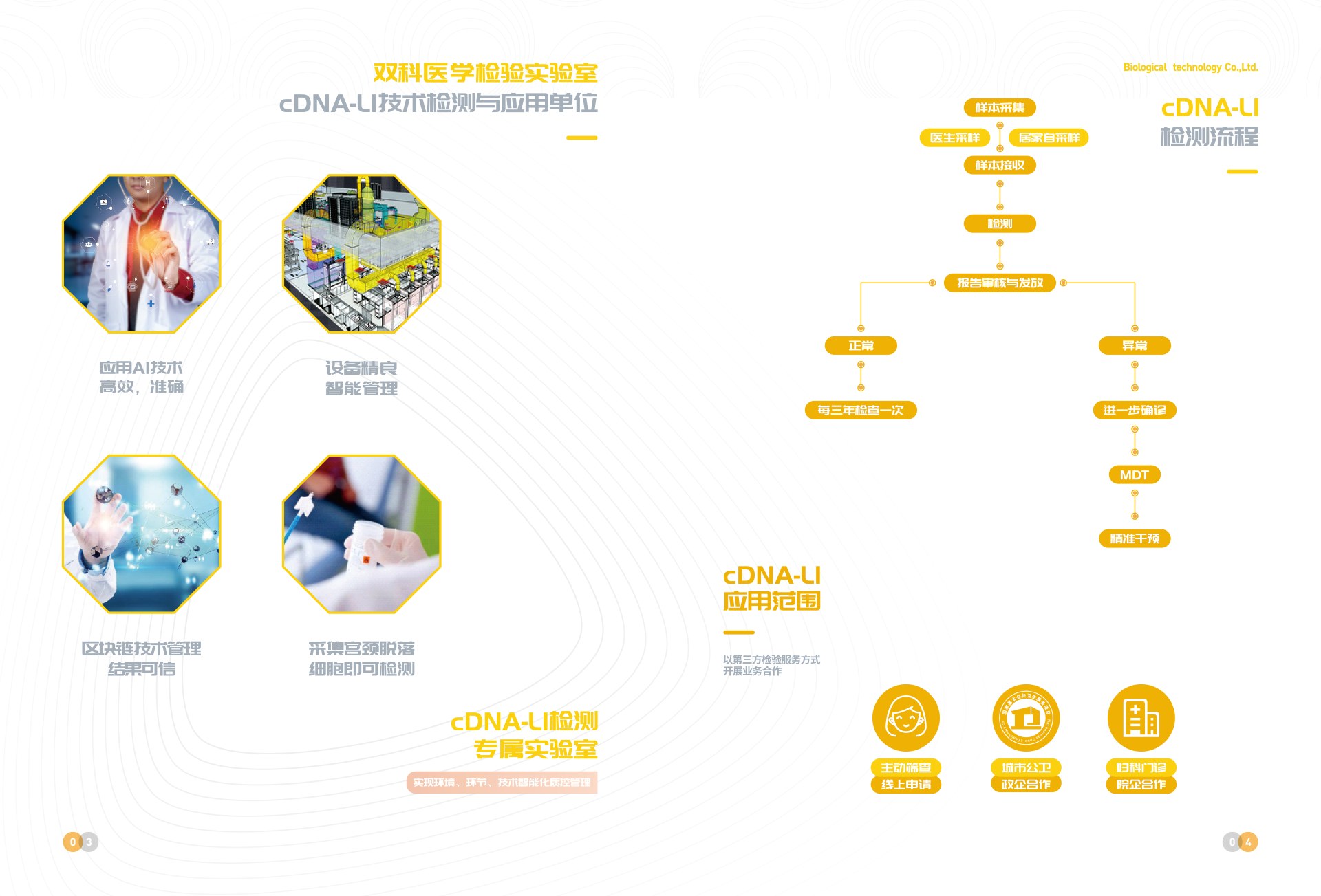 深圳市雙科生物科技有限公司創(chuàng)立于2012年12月12日,是按照國家“十二五”、“十三五”科技創(chuàng)新規(guī)劃、《中國防治慢性病中長期規(guī)劃(2017-2025年)》與《“健康中國2030”規(guī)劃綱要》等政策要求,以“健康中國所系,呵護(hù)生命相托”為公司使命,在“十二五”及“十三五”期間公司先后完成技術(shù)體系建模與試運(yùn)行、服務(wù)體系構(gòu)建與運(yùn)行、腫瘤綜合防控體系建立與實(shí)施,在高新生物技術(shù)領(lǐng)域,形成了具有完全自主創(chuàng)新與獨(dú)立知識(shí)產(chǎn)權(quán)的常見腫瘤液態(tài)活檢技術(shù)、體細(xì)胞技術(shù)、醫(yī)學(xué)AI技術(shù)、宮頸癌預(yù)警cDNA-L1技術(shù)、腦卒中早期預(yù)警MTHFR/MTRR技術(shù) 、 N-MDT技術(shù)、“防-控`-保”技術(shù)等和服務(wù)體系。